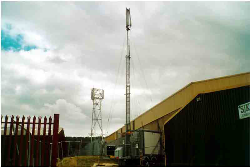 at the compound; 21m triangular cross-section, tapering galv. steel lattice