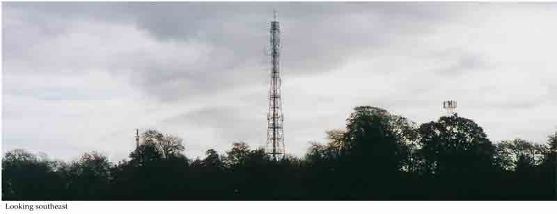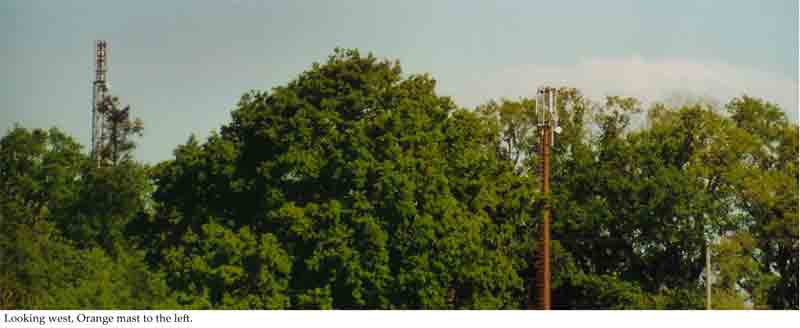 Comments: Tall intrusive mast on high ground emerging from trees, visible from miles